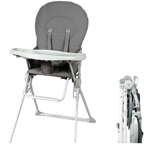 Bambisol Fixed Foldable Baby High Chair | Ultra Compact and Lightweight, Removable Adjustable Tablet | Grey