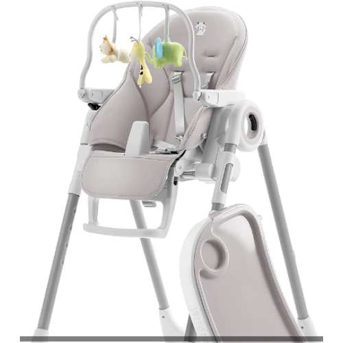 Sweety Fox Scalable Baby High Chair, Foldable and Adjustable, Easy Cleaning - Reclining into a baby lounger with J...