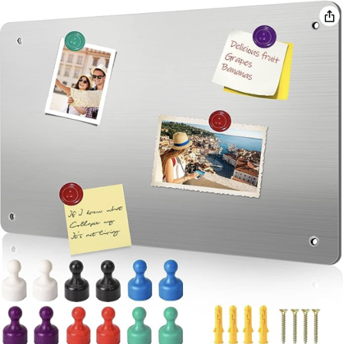 42 x 30 cm Magnetic Wall Board, Erasable Magnetic Whiteboard, Wall Mounts, Magnet Board for Displaying Magnetic Letters, Numbers, Animals Features: Magnetic plate cleaner and more durable than traditional whiteboards, premium surface is designed to be reused and shines like new every time you clean it. Alloy steel wall-mounted magnetic board, ideal for kitchen, living room, bedroom, bathroom, refrigerator, etc., ideal for parents, teachers and students. Magnetic board the product comes with velcro and screws, if you choose to store items, it is recommended to drill holes, as a fashion display, you can choose velcro. Magnetic board itself has no magnetism, and can be used to display all kinds of magnets, Versatile design, perfect for storing important notes, pictures, photos, memos. Specifications: Package dimensions: 42 x 30 x 2 cm Gross weight of individual parts: 500 g Color: White Material type: Metal Package including: 1 x magnetic board 4 x expansion screws 12 x strong magnetic pins (green, blue , black, purple, white and red / two of each color)